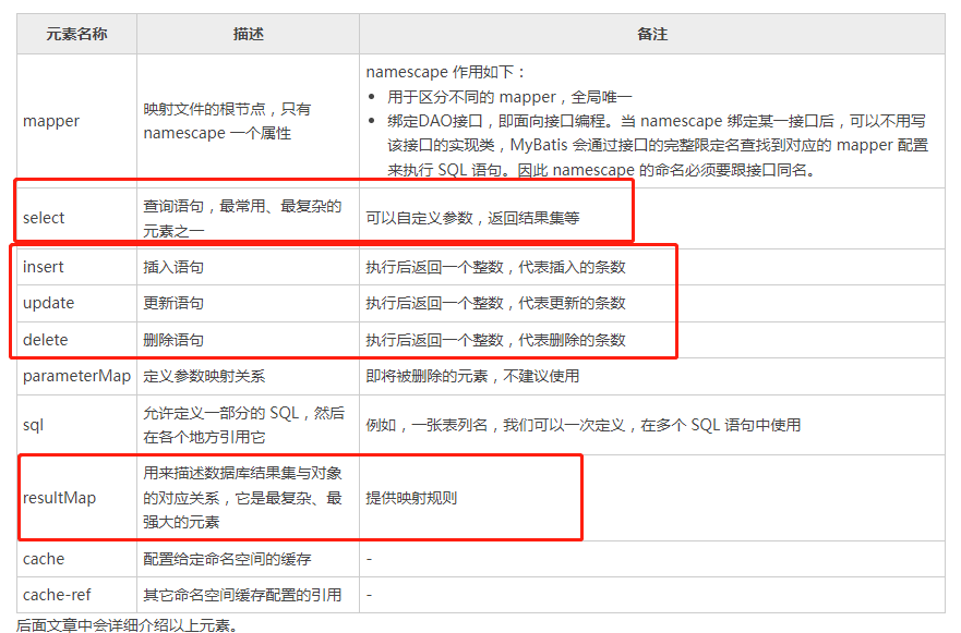 下面介绍在映射器中可以定义哪些元素,以及它们的作用。