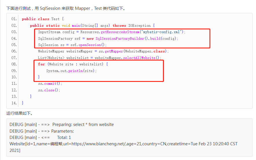 XML 定义映射器分为两个部分:接口和XML。下面先定义接口 WebsiteMapper(本节基于《第一个MyBatis程序》中的示例实现)。