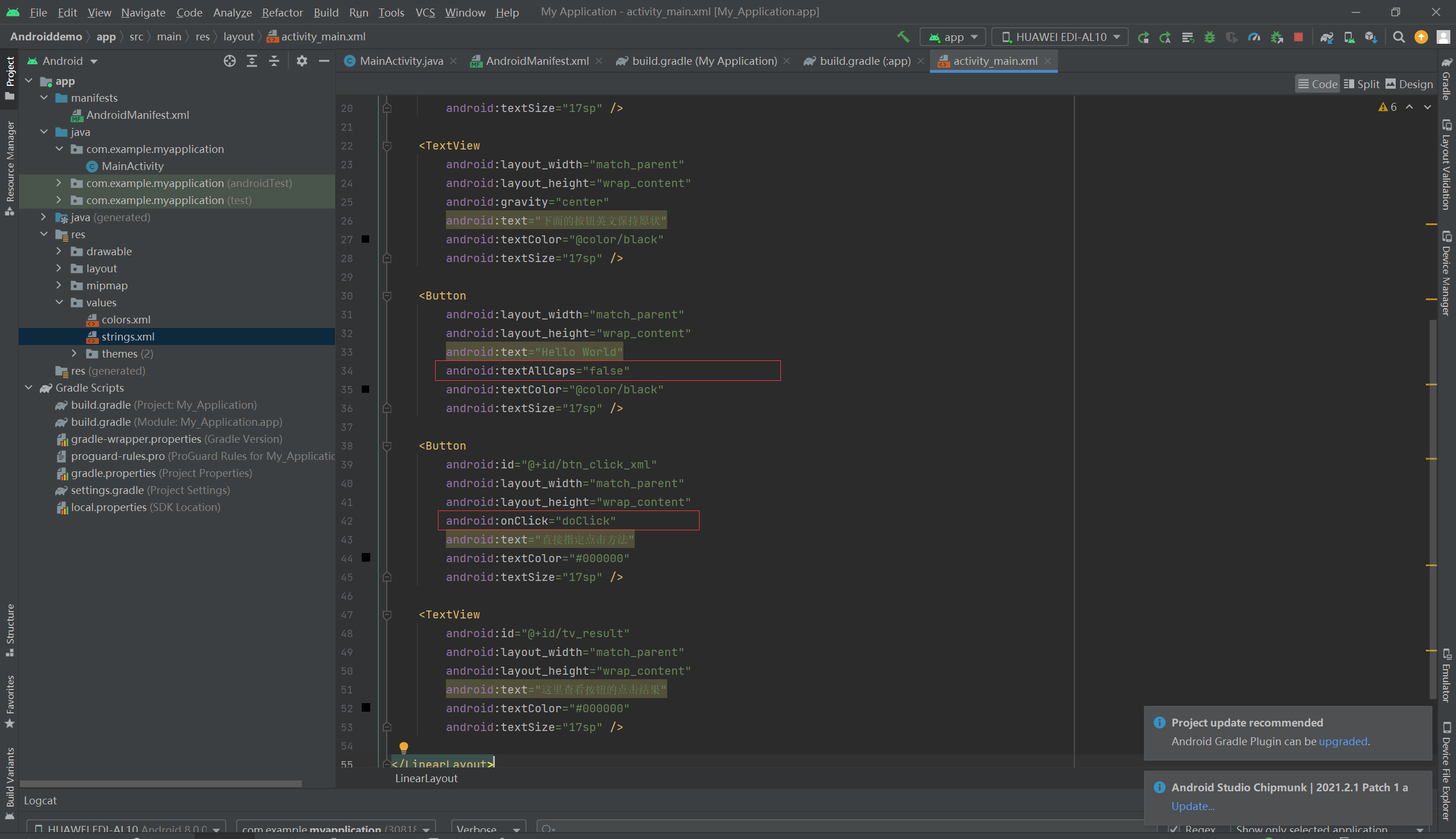 本文介绍Android中Button组件的textAllCaps属性使用方法,演示如何通过设置此属性控制按钮文本大小写显示,并展示了如何在XML布局文件中直接指定Button的点击事件。