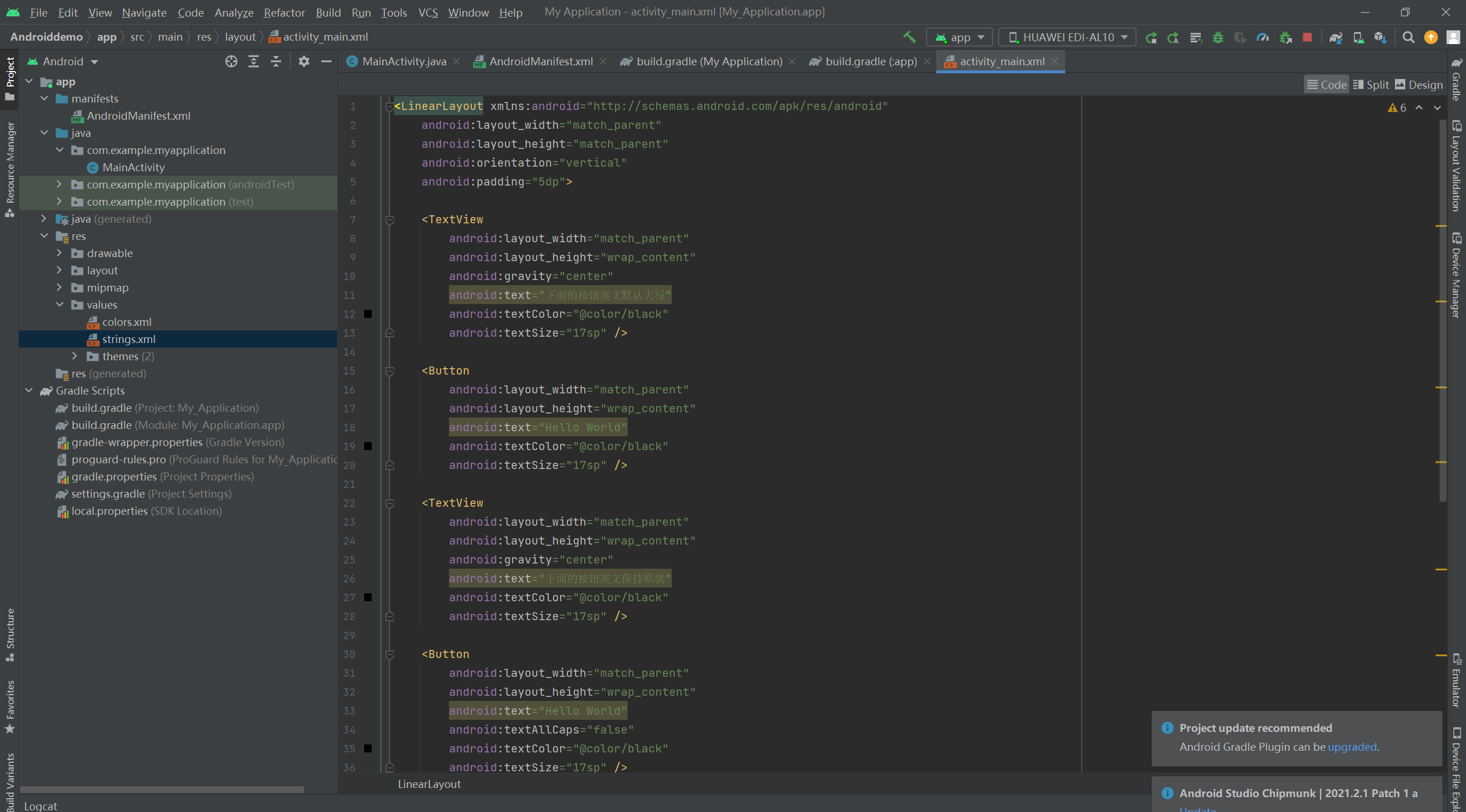 android:text="下面的按钮英文默认大写"