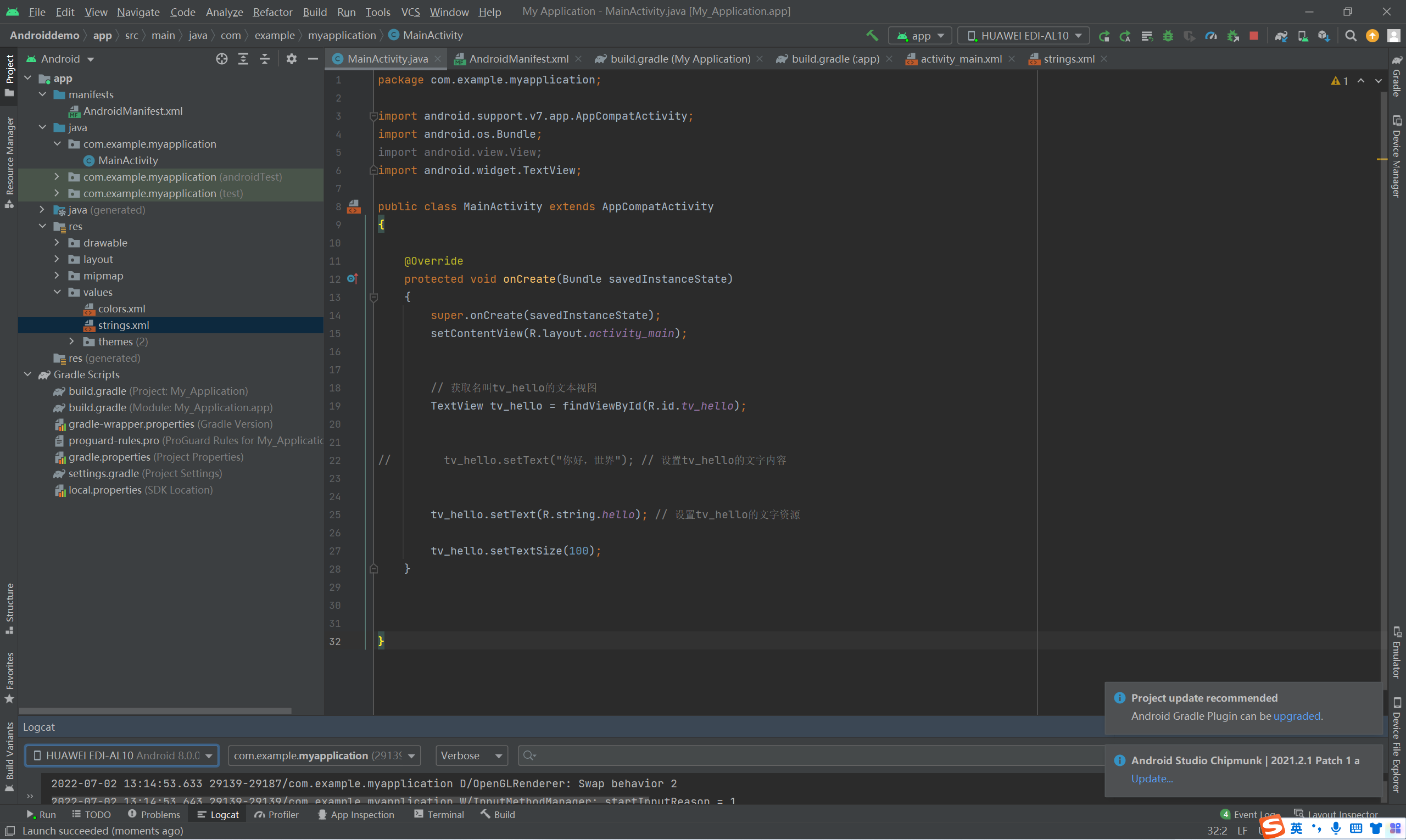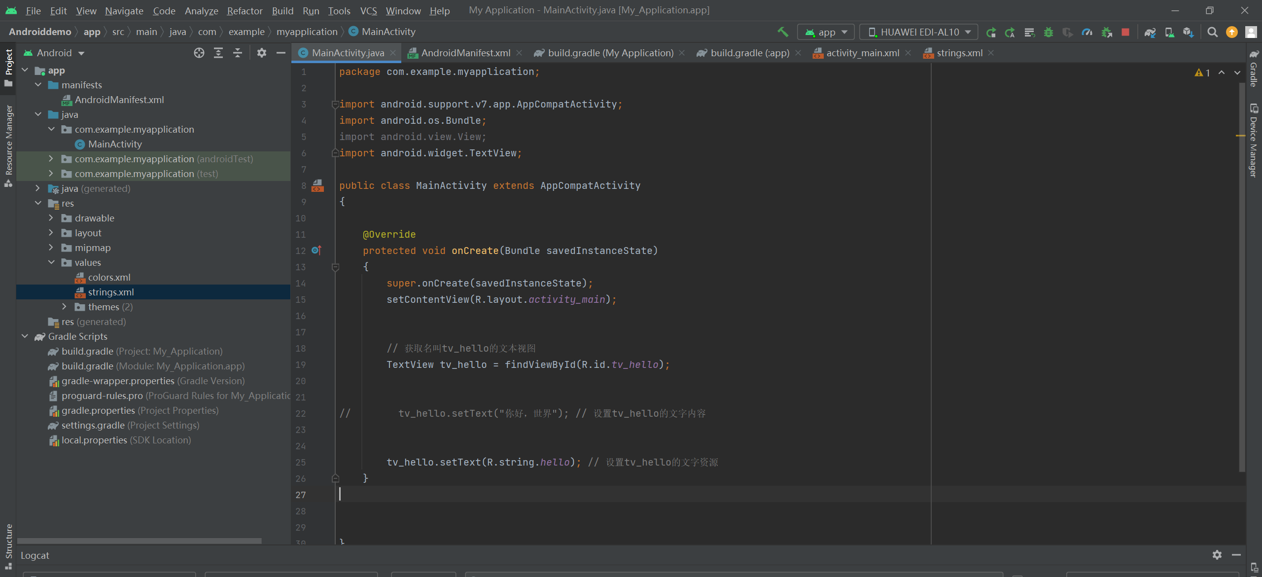TextView tv_hello = findViewById(R.id.tv_hello);