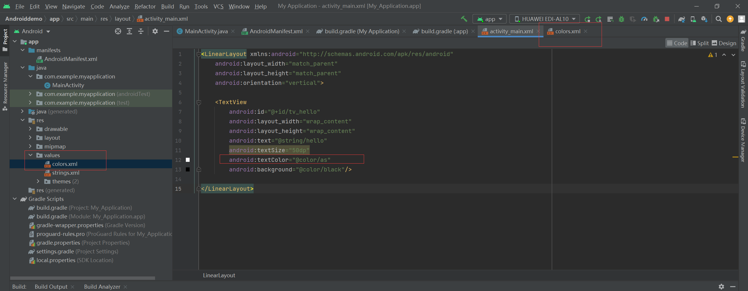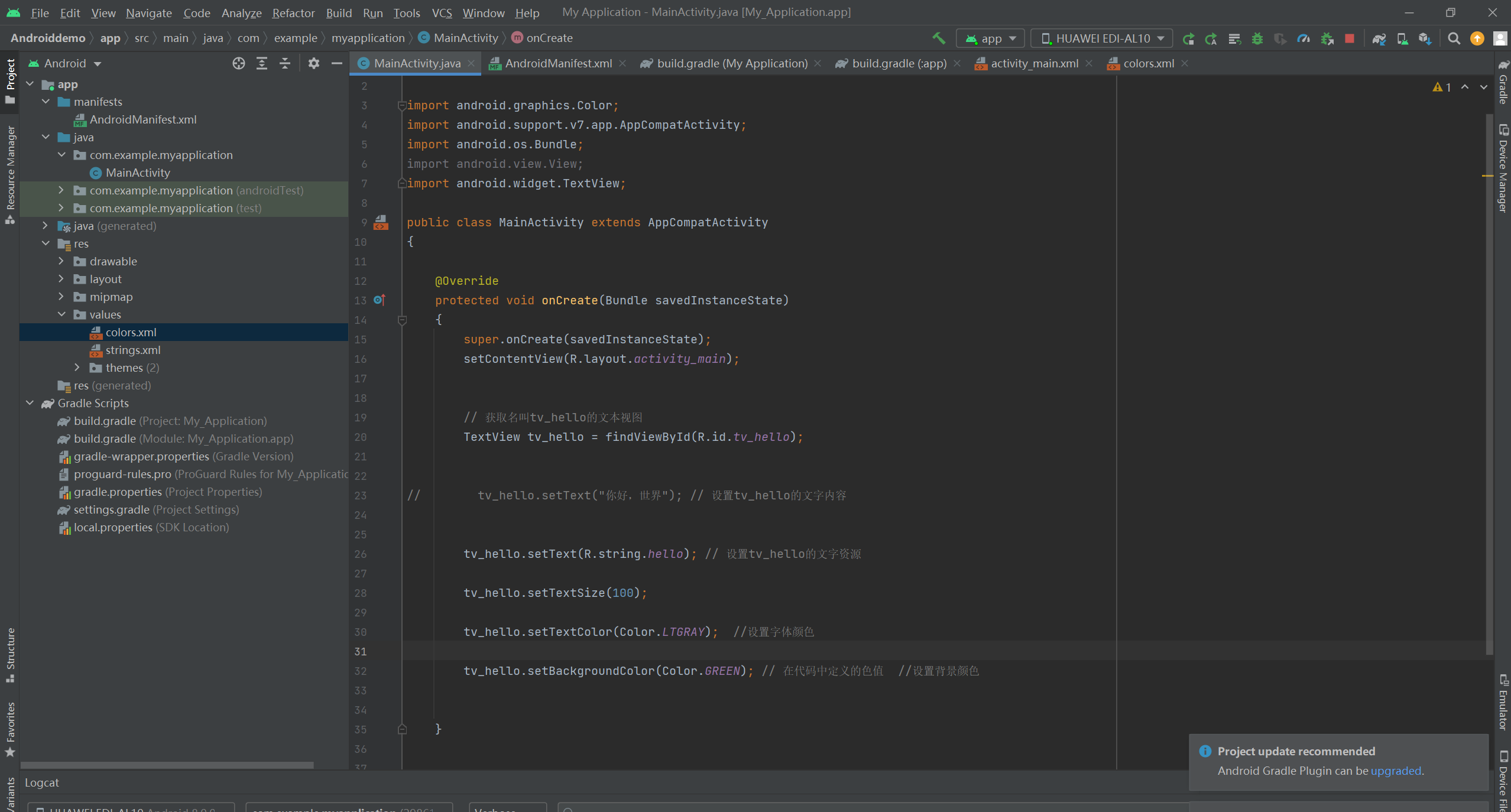 tv_hello.setBackgroundColor(Color.GREEN); // 在代码中定义的色值 //设置背景颜色