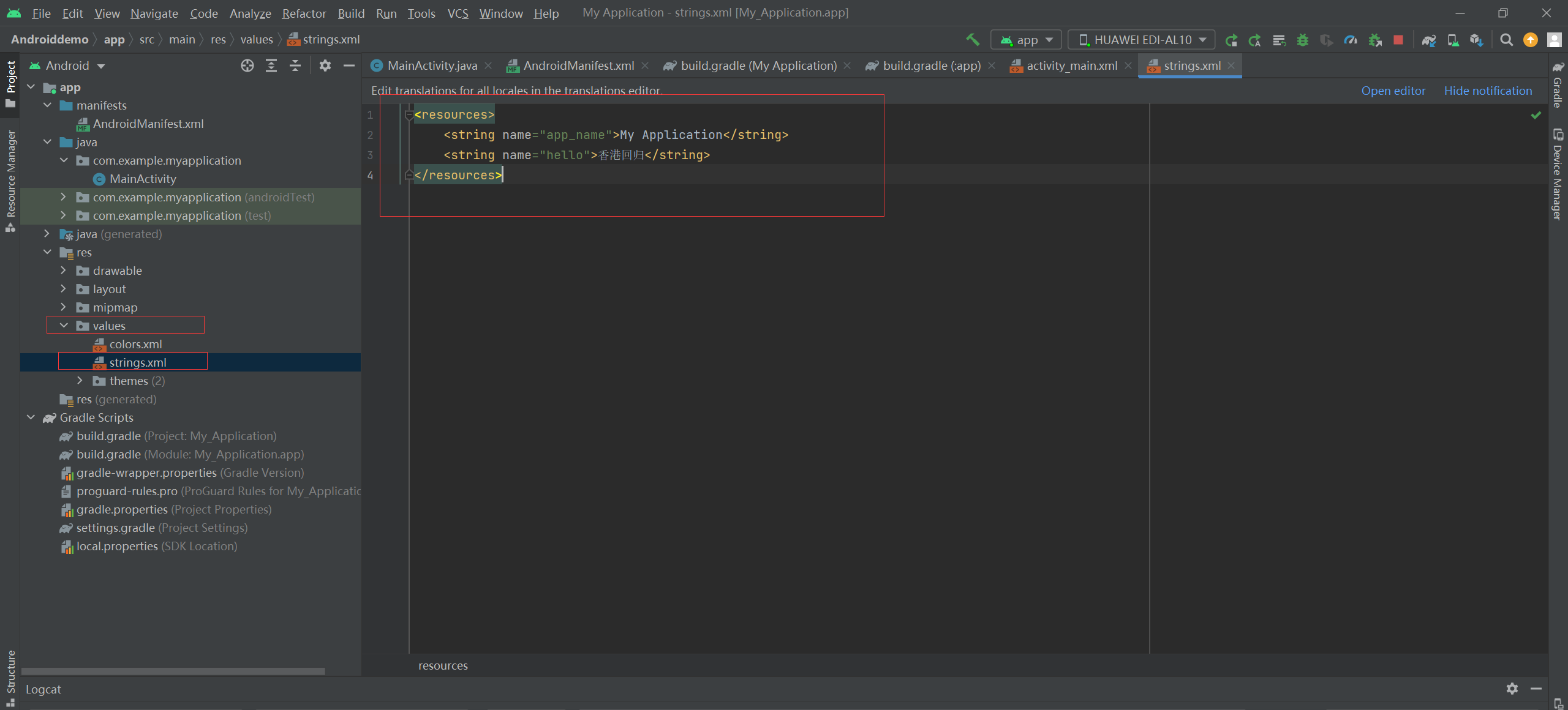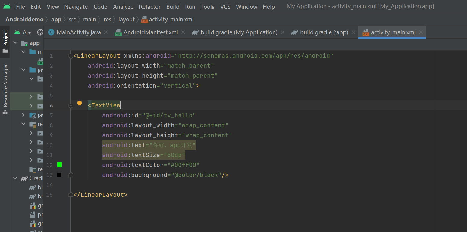 tv_hello.setText(R.string.hello); // 设置tv_hello的文字资源