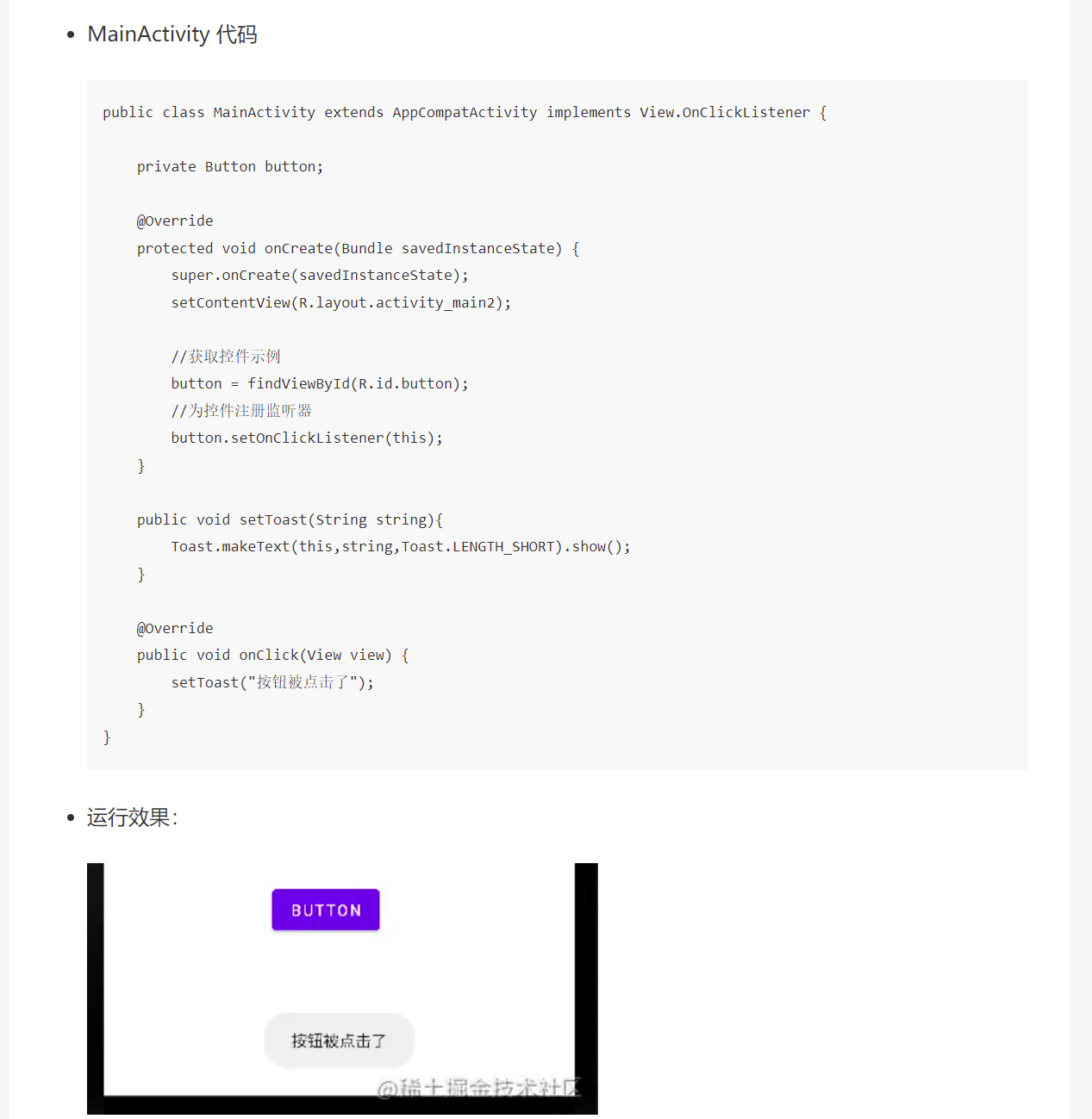 - MainActivity 实现 View.OnClickListener 接口