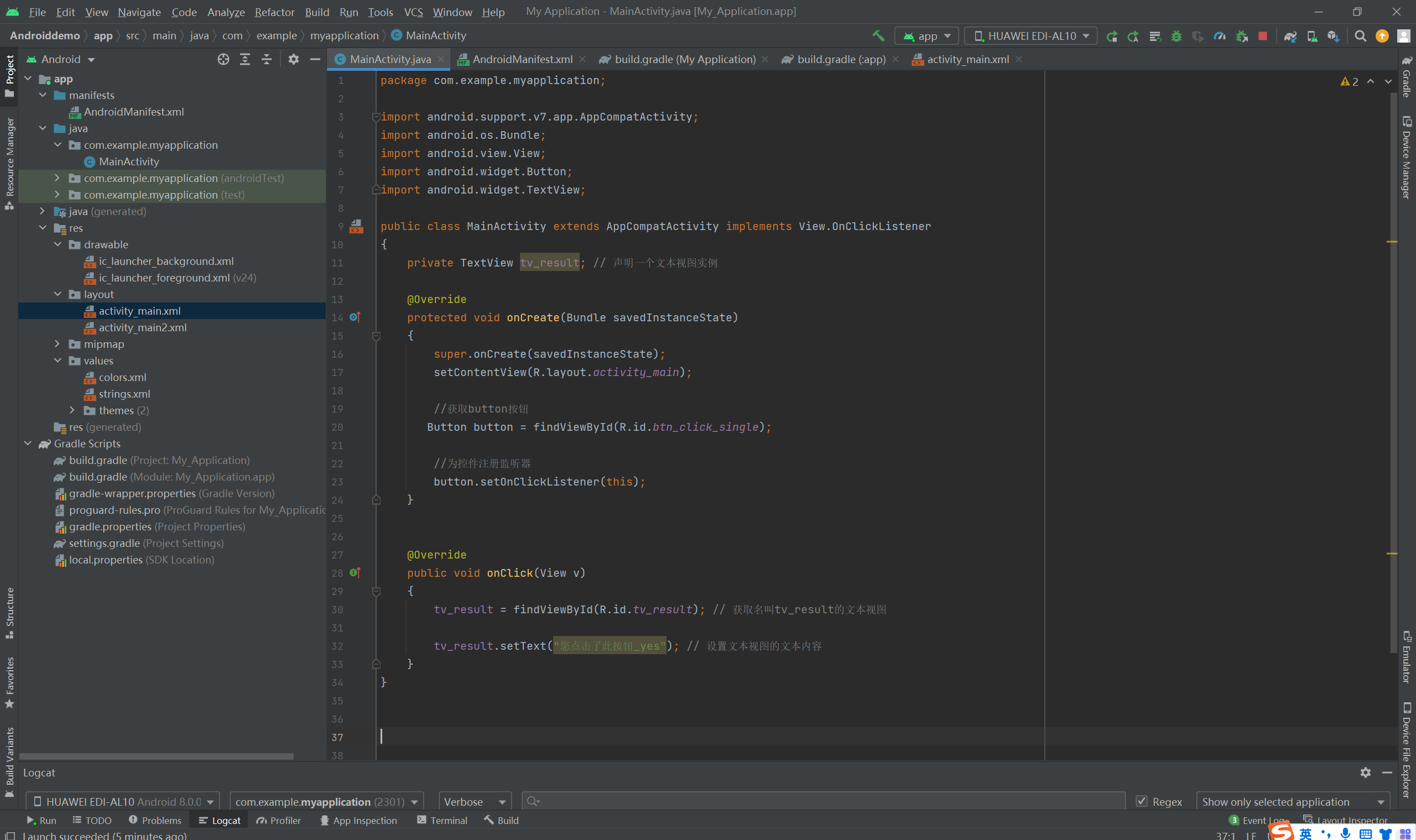 tv_result = findViewById(R.id.tv_result); // 获取名叫tv_result的文本视图