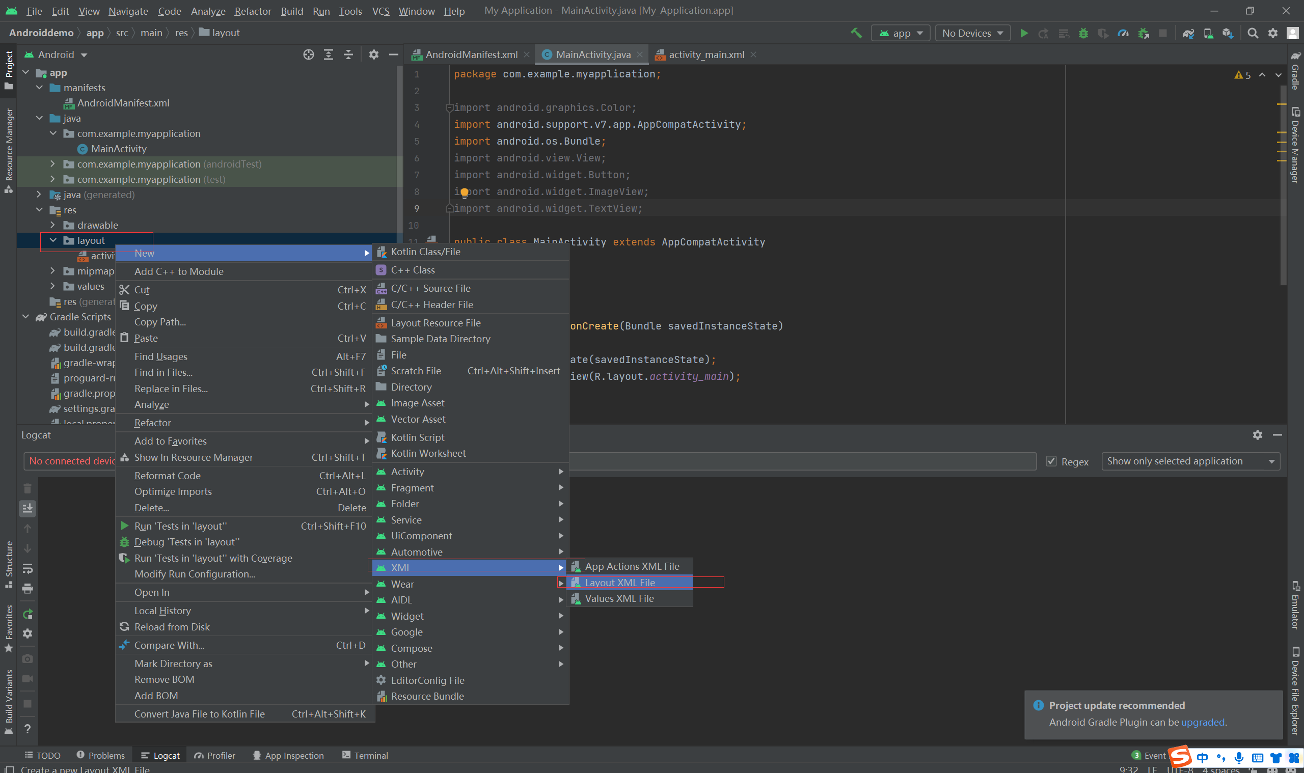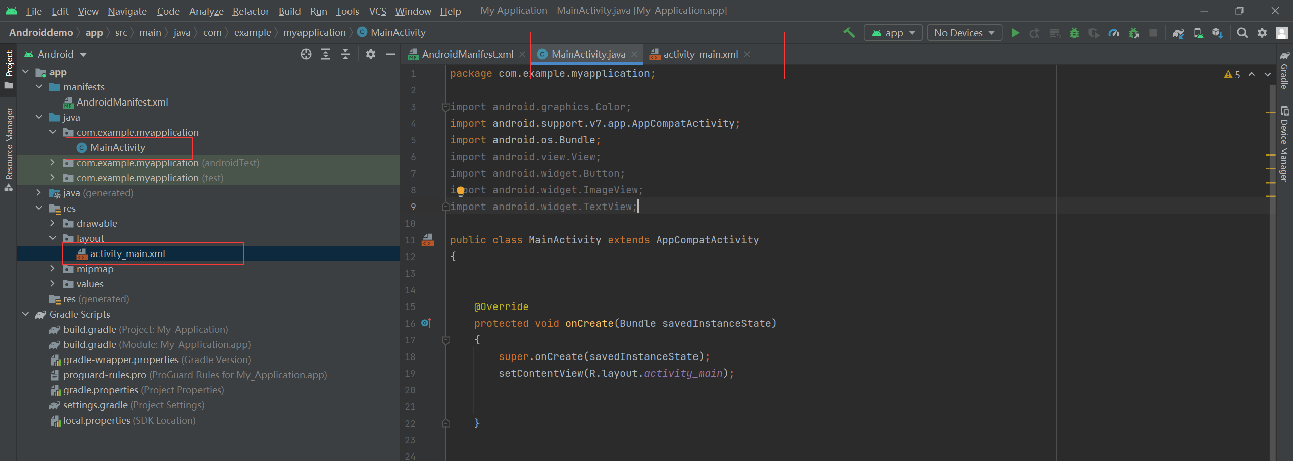 首先,我们创建一个app工程的时候,会有一个默认初始的activity和xml对应页面: