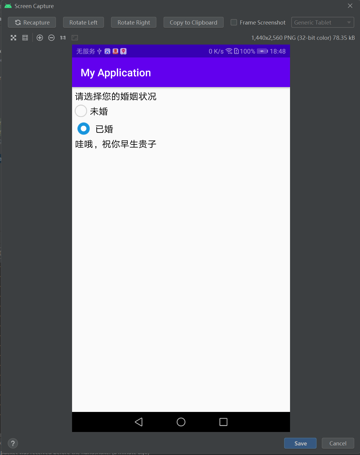 // 给rg_marry设置单选监听器,一旦用户点击组内的单选按钮,就触发监听器的onCheckedChanged方法