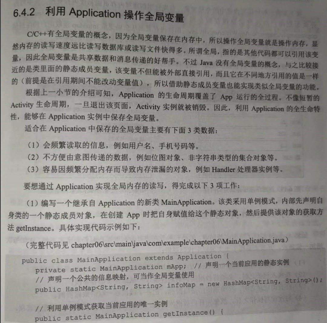 (1)写一个继承自Application的类MainApplication。该类要采用单例模式,内部声明自身类的一个静态成员对象,然后提供该静态对象的获取方法getInstance。