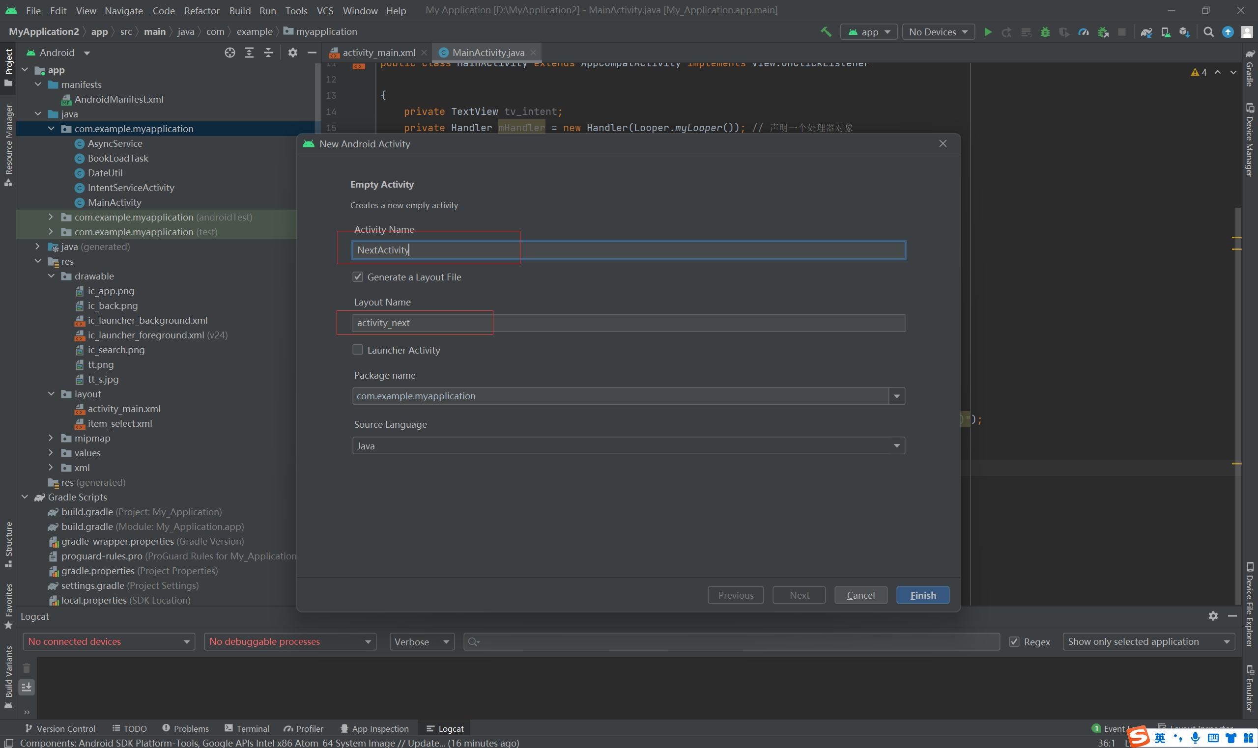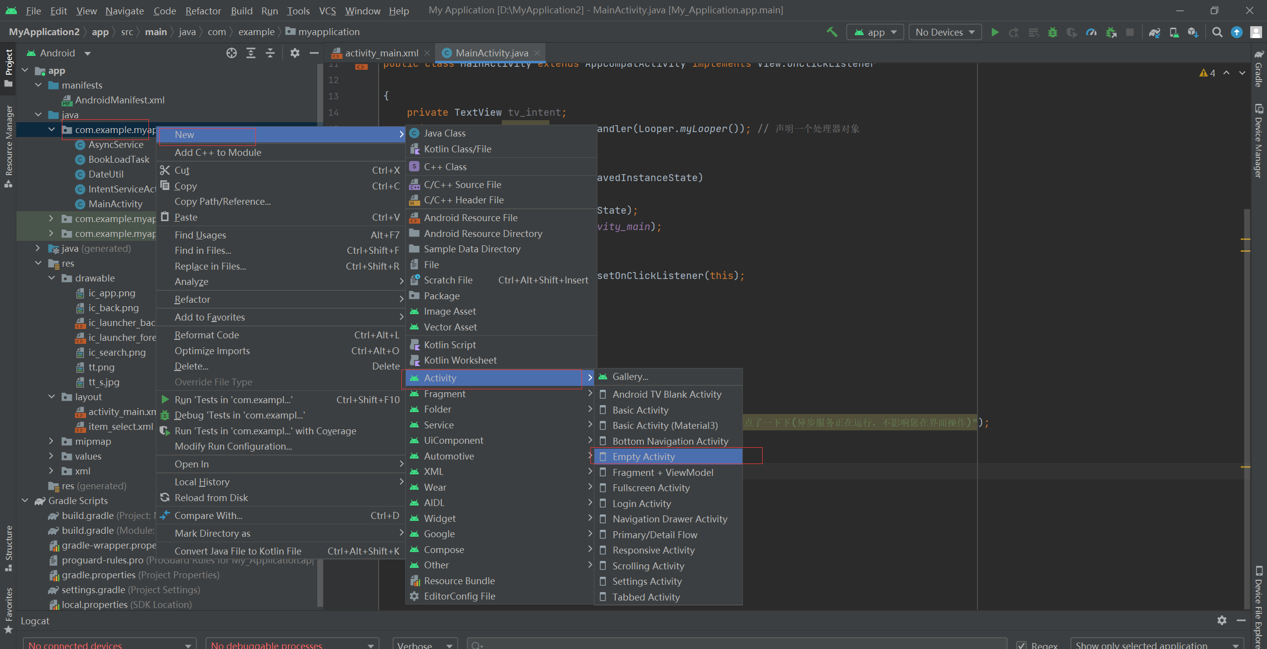 如何快速新建一个空的activity页面: