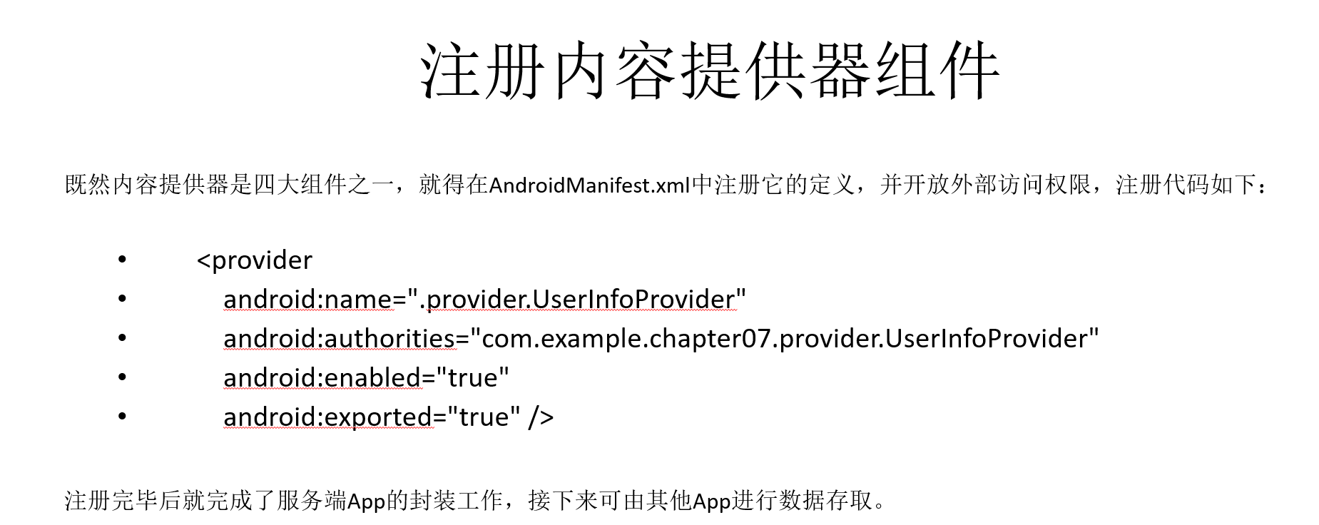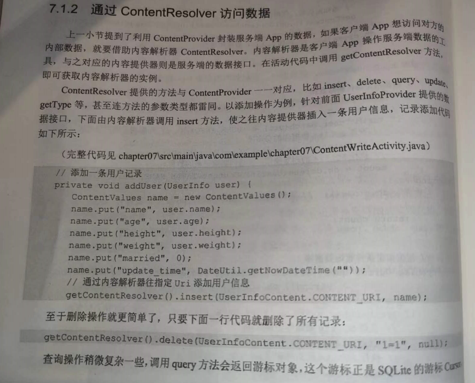 利用ContentProvider只实现服务端App的数据封装,如果客户端App想访问对方的内部数据,就要通过内容解析器ContentResolver访问。
