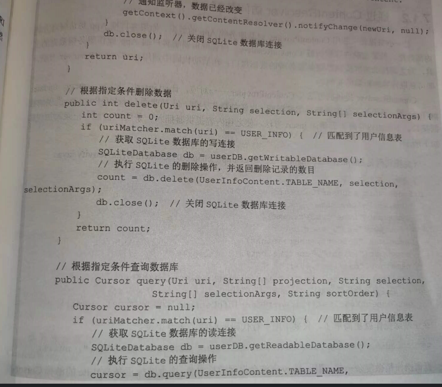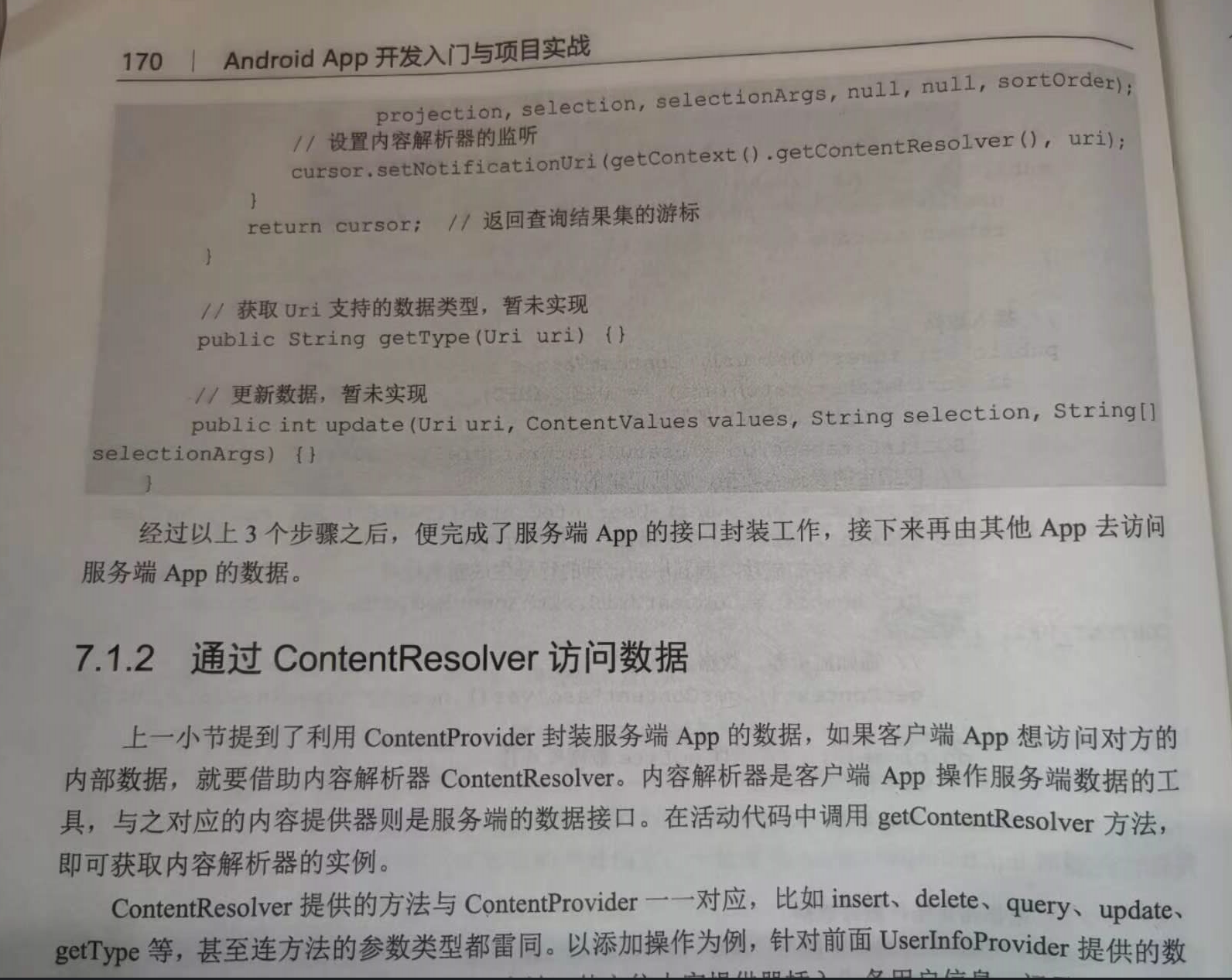 ContentResolver提供的方法与ContentProvider是一一对应的,比如query、insert、update、delete、getType等方法