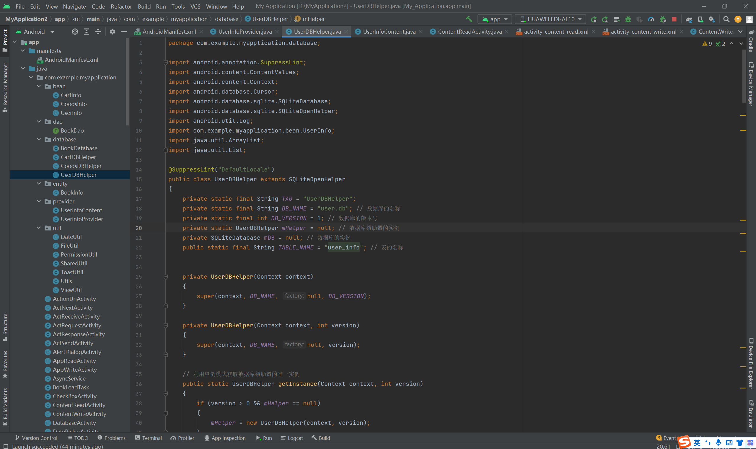 private static UserDBHelper mHelper = null; // 数据库帮助器的实例