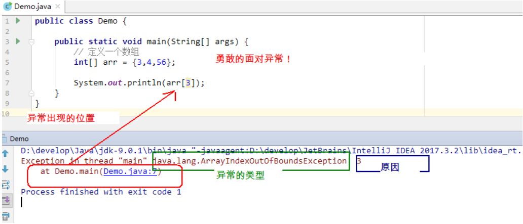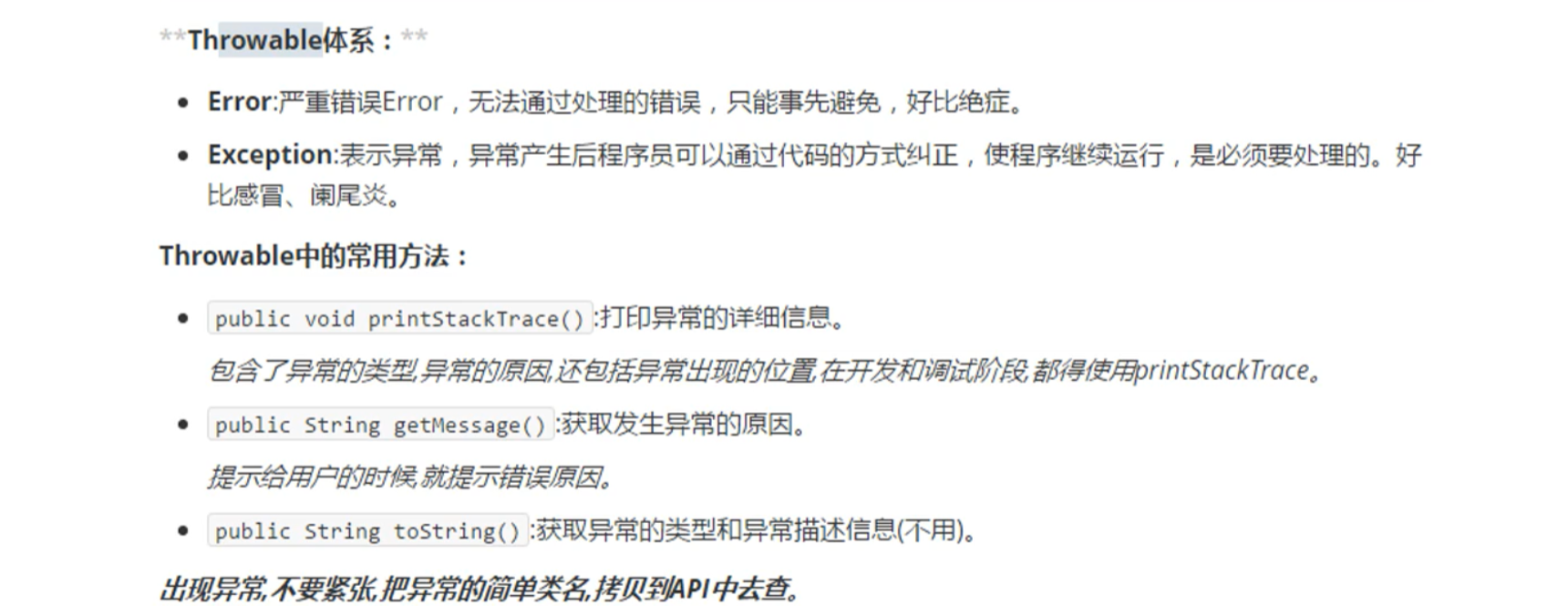 出现异常,不要紧张,把异常的简单类名,拷贝到API中去查。