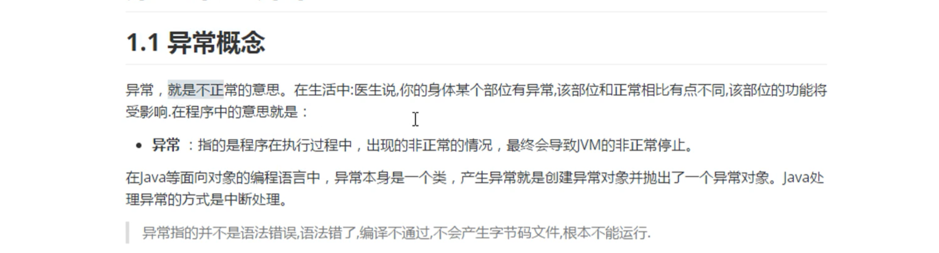 异常指的并不是语法错误,语法错了,编译不通过,不会产生字节码文件,根本不能运行.