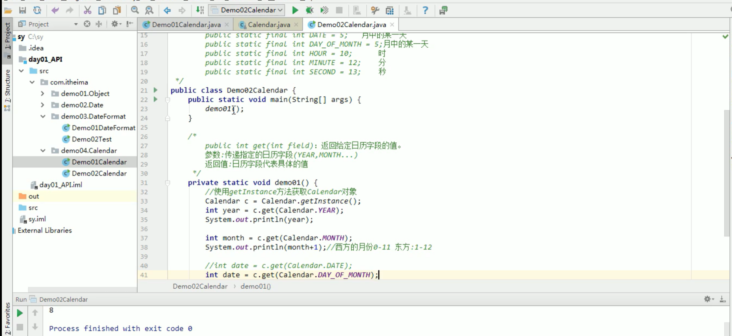 Calendar类中提供很多成员常量,代表给定的日历字段: