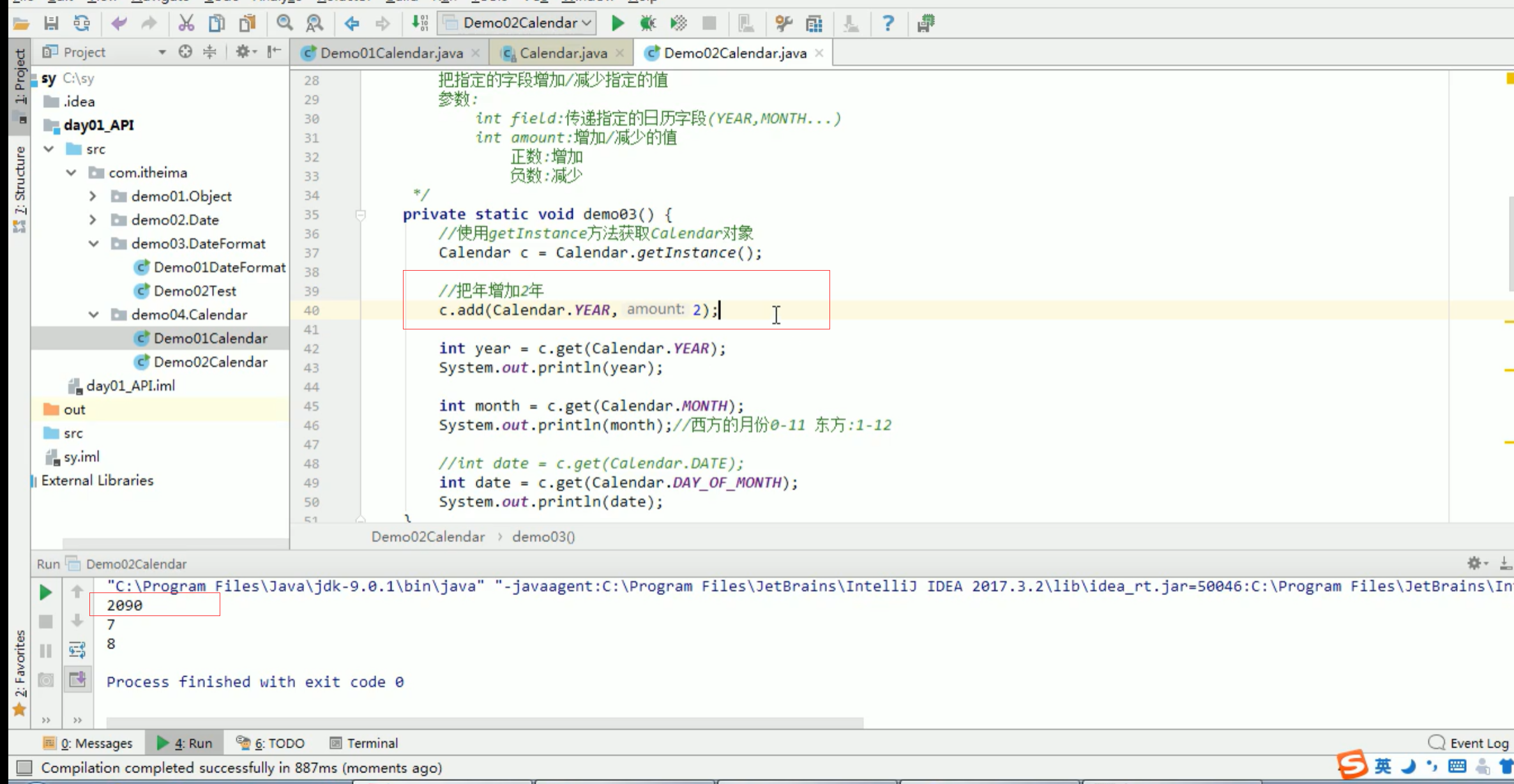 public abstract void add(int field, int amount):根据日历的规则,为给定的日历字段添加或减去指定的时间量。 -