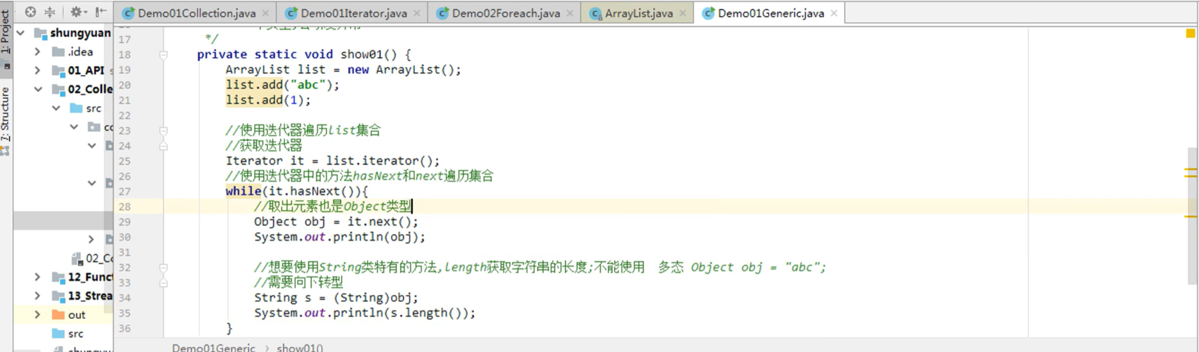 集合不使用泛型,默认的类型就是Object类型,可以存储任意类型的数据
