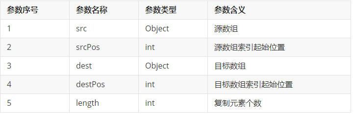 数组的拷贝动作是系统级的,性能很高。System.arraycopy方法具有5个参数,含义分别为:
