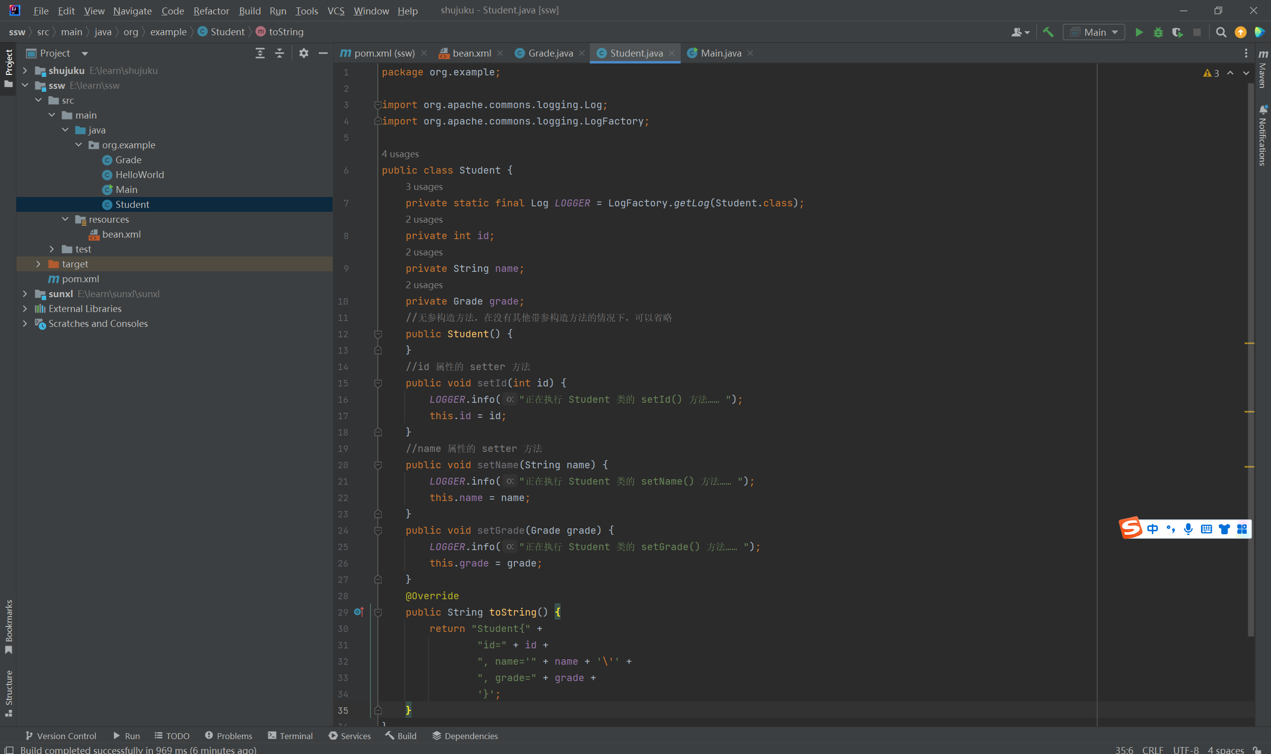 LOGGER.info("正在执行 Student 类的 setGrade() 方法…… ");