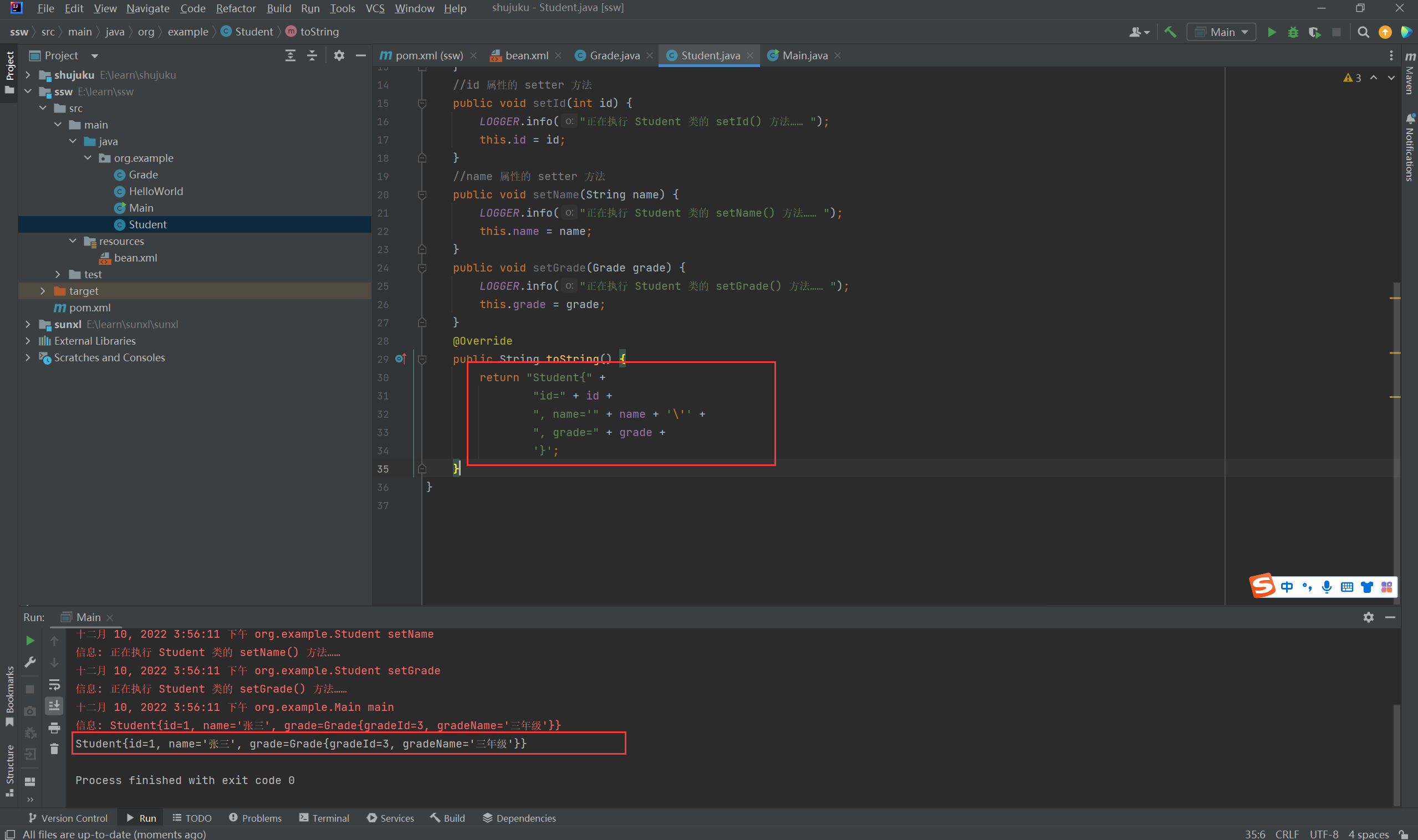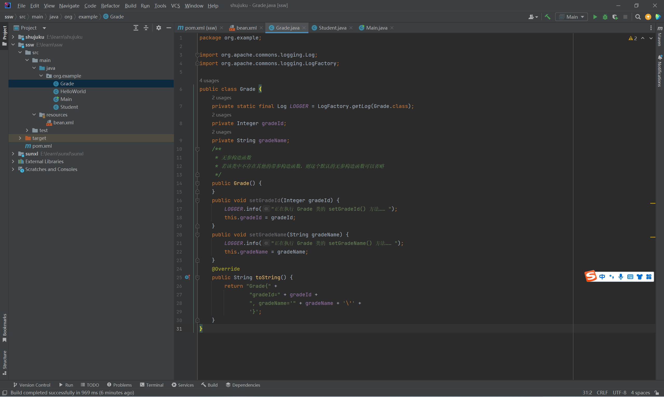 LOGGER.info("正在执行 Grade 类的 setGradeId() 方法…… ");