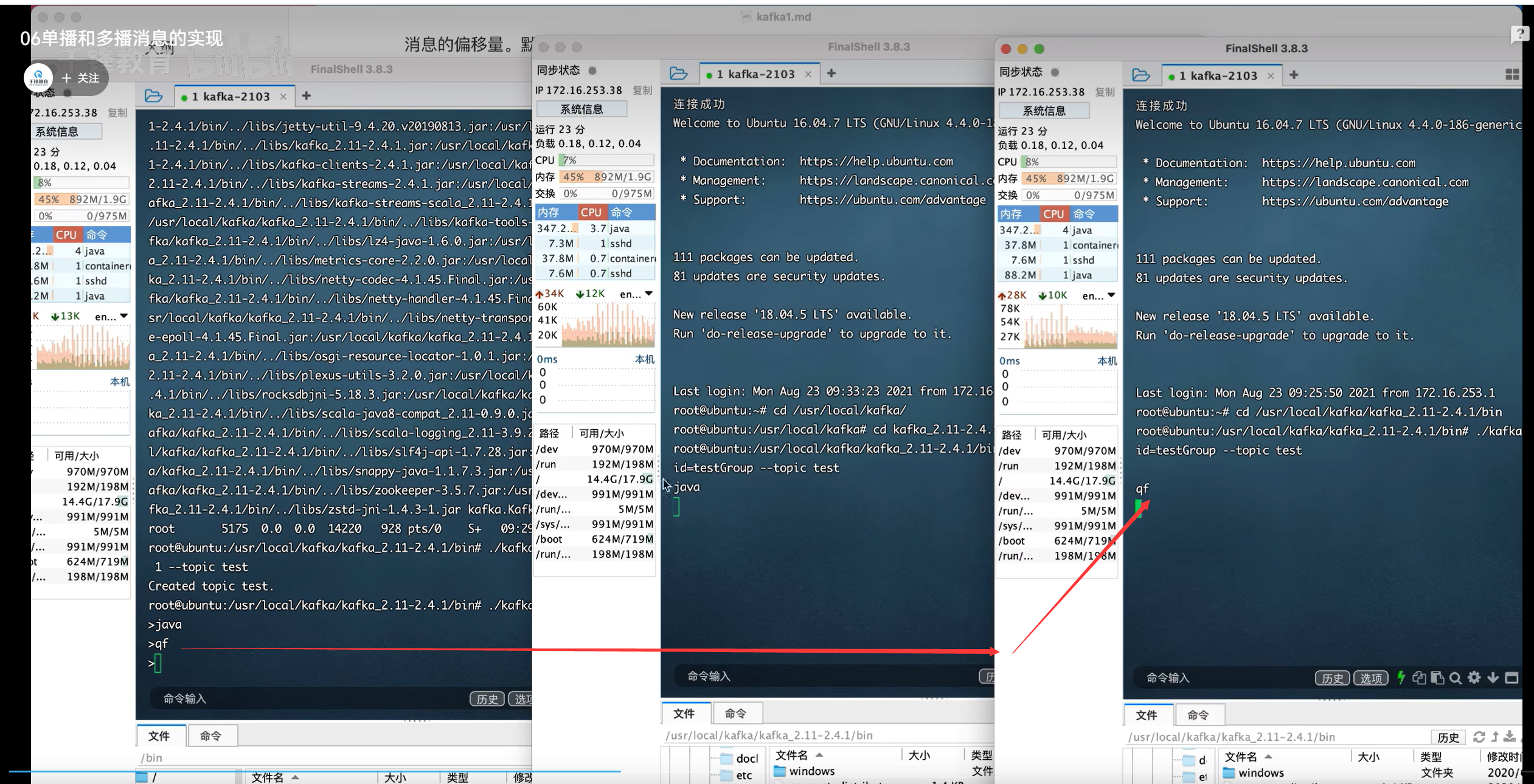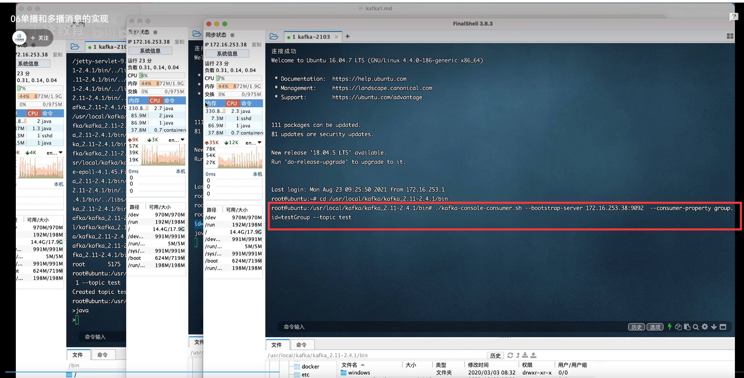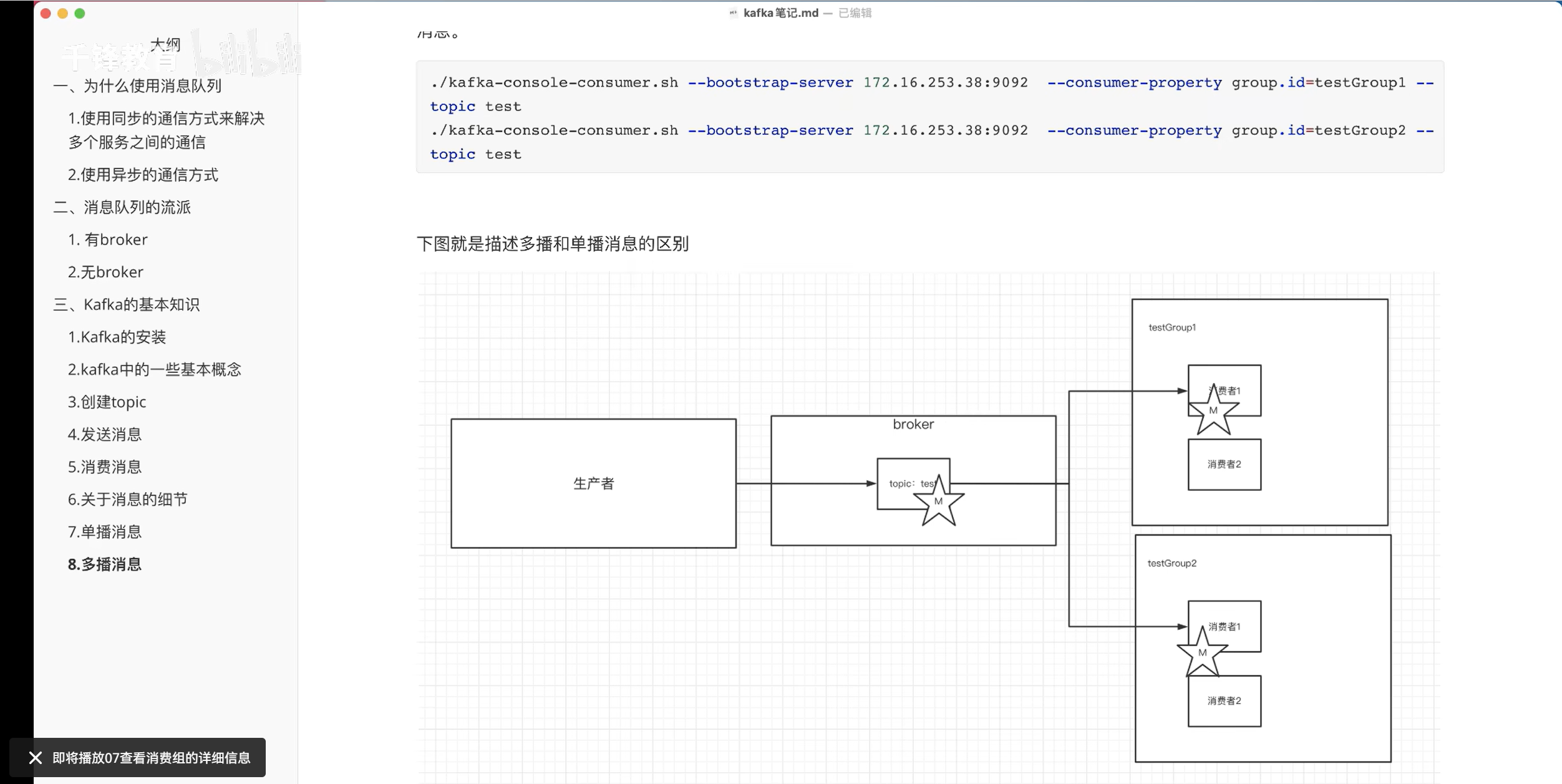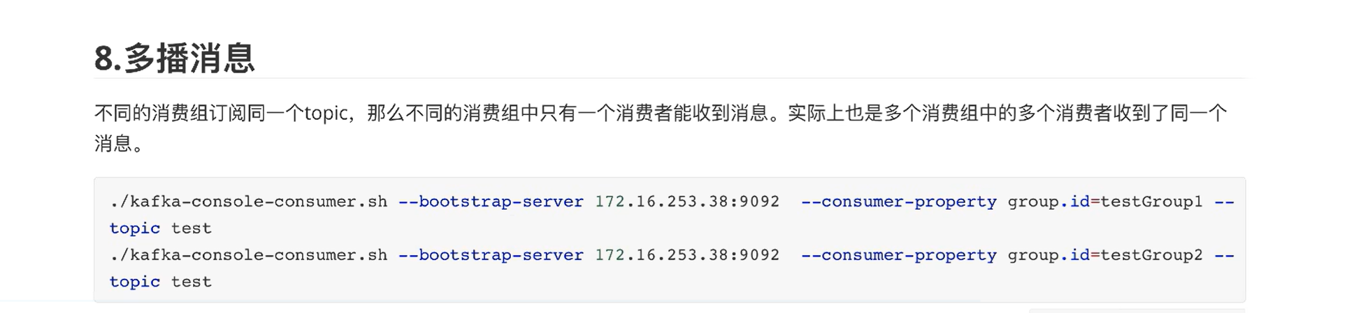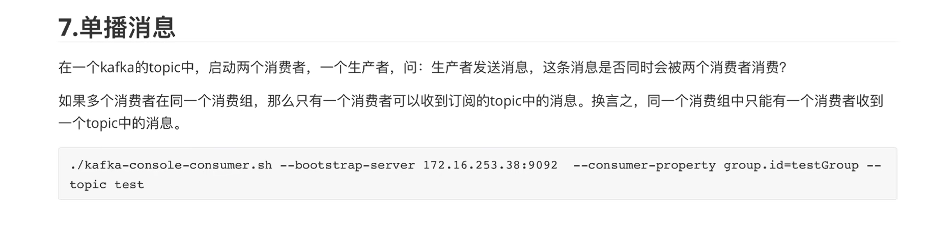 单播消息:⼀个消费组⾥ 只会有⼀个消费者能消费到某⼀个topic中的消息。于是可以创建多个消费者,这些消费者在同⼀个消费组中。