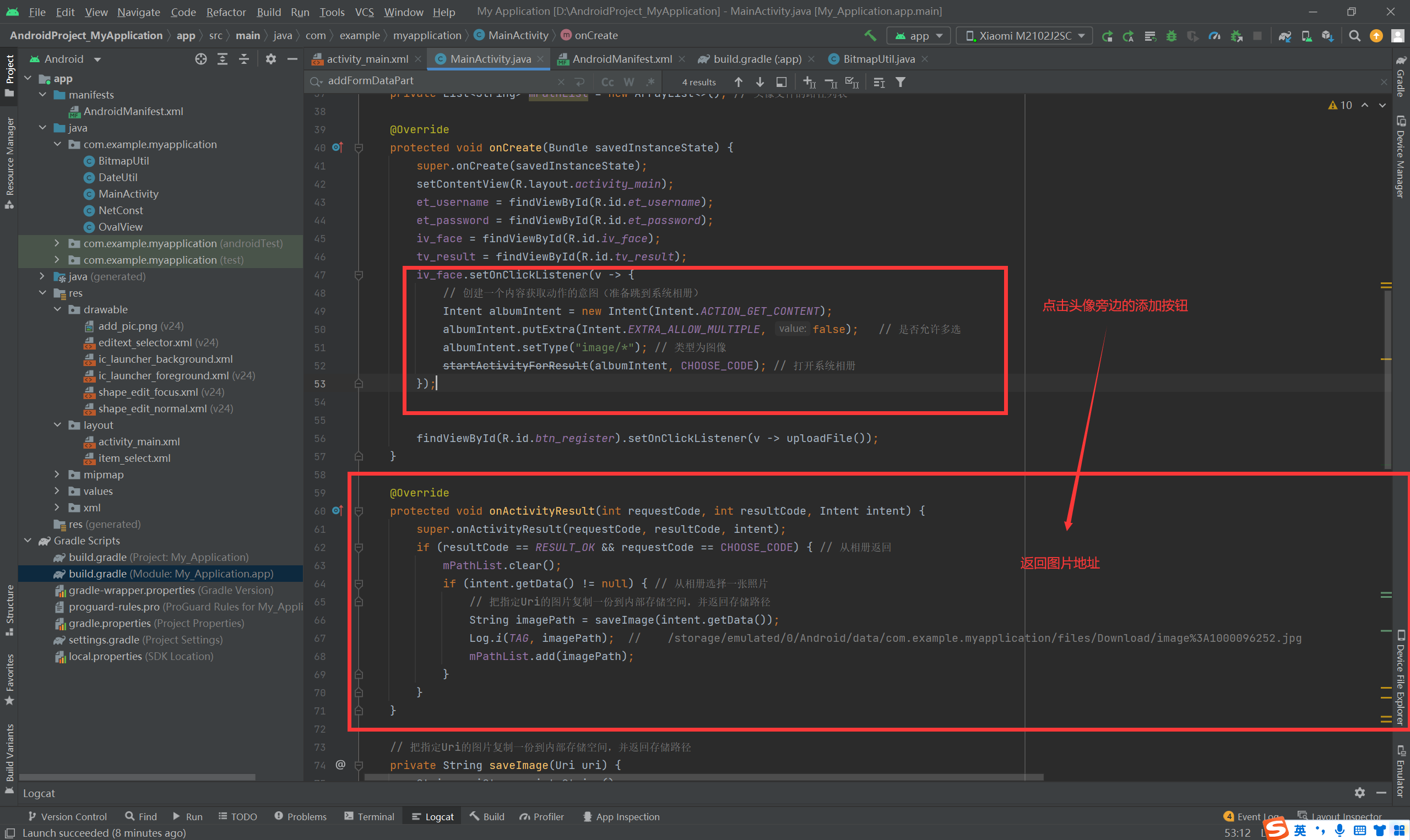 Log.i(TAG, imagePath); // /storage/emulated/0/Android/data/com.example.myapplication/files/Download/image%3A1000096252.jpg