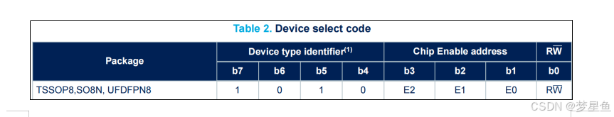 E2PROM芯片的设备地址一共有7位,其中高4位固定为:1010,低3位则由E3/E2/E1信号线的电平决定E2PROM设备地址。
