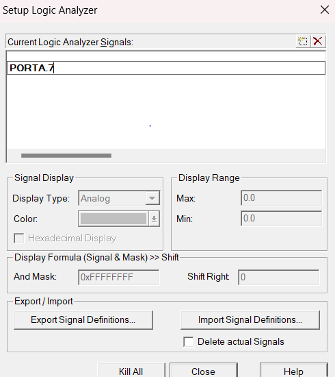 添加端口的方式是PORTA.1,代表在硬件上是PA1是你的通道,如果是PB7是通道,那么就填写为