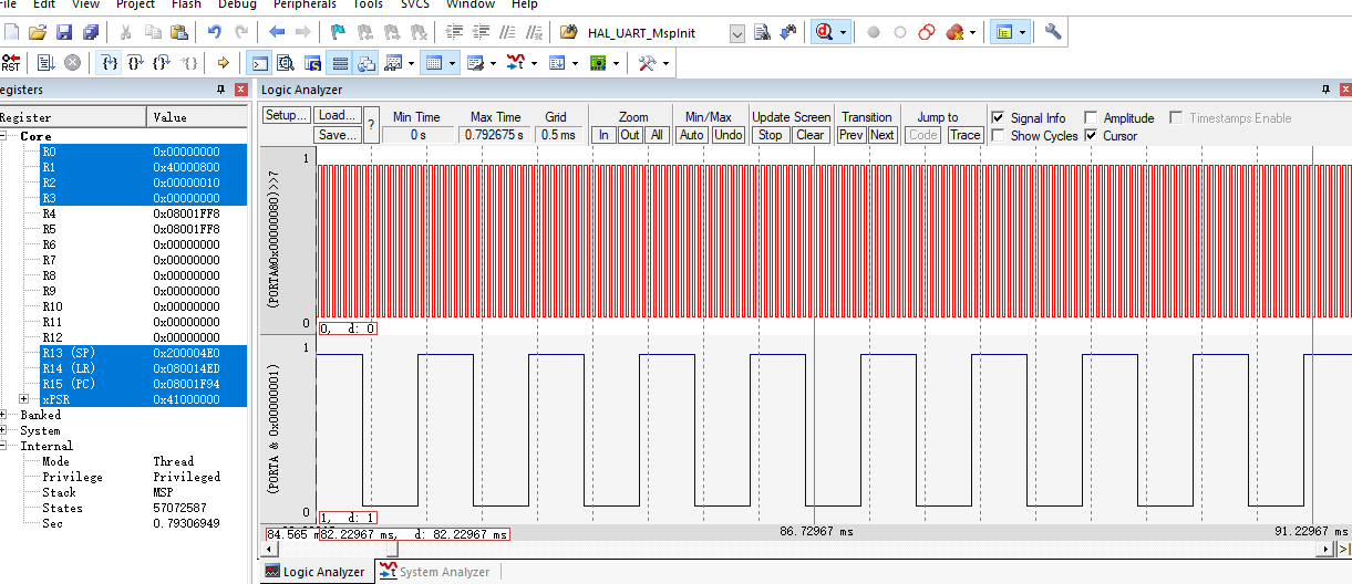 在Keil中可以用逻辑分析仪进行查看PWM波