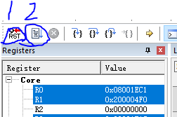 6.在左上角,先点击1进行复位,再点击2进行运行,即可查看到pwm波
