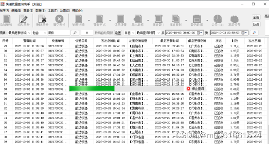 一键就可以筛选出两天未更新的单号。任意打开查看详细的物流验证。对比查询的时间证实。筛选成功。