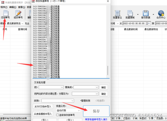 然后回到主界面上,单击“添加单号”在弹出的窗口中用最直接的方法复制粘贴上单号。并点保存。