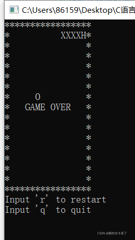 map[A[sum - 2].x][A[sum - 2].y] = 'X'; //把地图上原蛇头坐标处的字符设置成‘X’