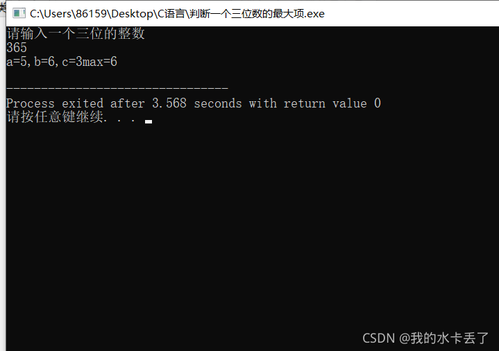 该博客展示了一个简单的C语言程序,用于从用户输入的三位数中找出最大位的数字。程序首先读取一个三位数,然后通过取模和除法操作分别获取个、十、百位的数字,并进行比较找出最大值。