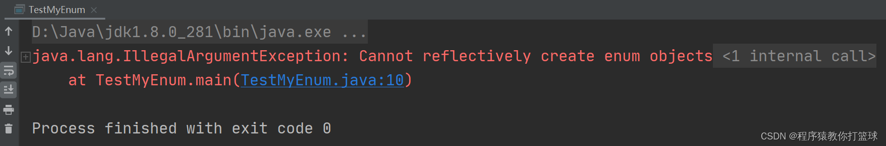 通过反射,能否拿到枚举的私有构造方法呢?我们写个代码来测试一下: