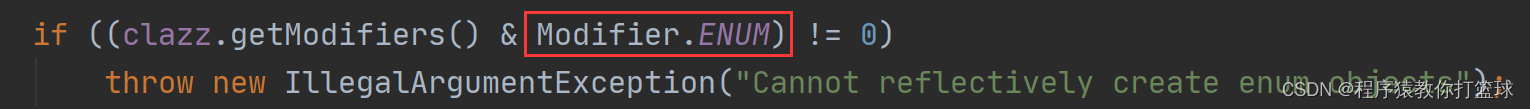 在JavaSE语法上,if 中的 & 会被认为 &&,所以枚举在这里被过滤了,这也就是你不能通过反射获取到枚举类的实例!