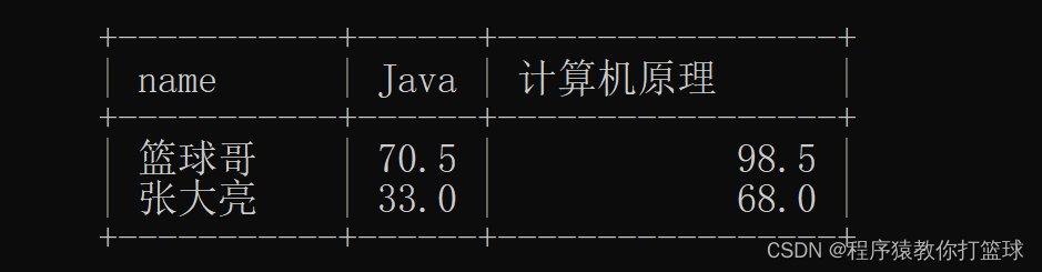 以上就完整的查询出了 计算机原理成绩大于Java成绩的同学了! 这个过程看似复杂,但不要着急,静下心来一步步分析,阅读 SQL,相信你能理解的!