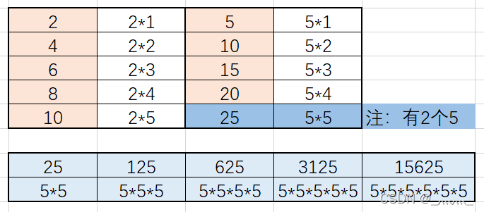 因为是乘法,所以有多少个2*5末尾就有多少个0