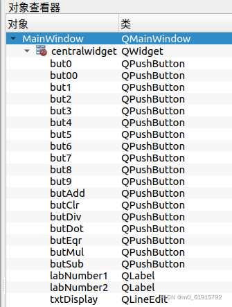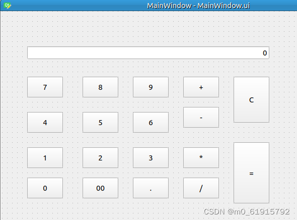 1、使用Qt Designer绘制简易计算器界面,如下图所示: