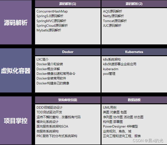 十余年来的一线开发经验和大厂实战经验:常见的模式与工具、工程化与工具、分布式架构、微服务架构、性能优化、大型项目商城实战