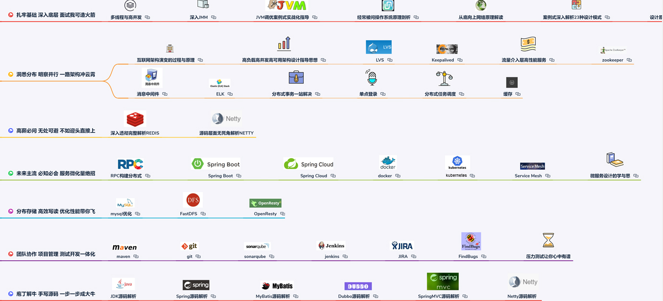 多线程与高并发—>深入JVM—>JVM调优案例式实战化指导—>操作系统原理解剖—>网络原理解读—>解读23种设计模式