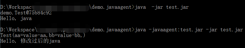 为了方便,我把agent和待测试的都打包成一个 test.jar ,所以下面还多了一行 Main-Class: demo.Test