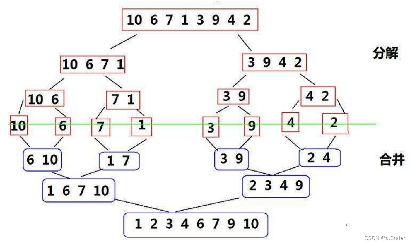 归并排序: