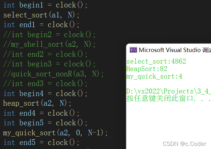 void count_sort(int* arr, int n) { int max = arr[0], min = arr[0]; for (int i = 0; i < n; i++) { if (max < arr[i]) max = arr[i]; if (min > arr[i]) min = arr[i]; } //max-min是该序列中最大值与最小值的差值 //即意为该序列的相对映射的最大范围的大小 //如“[0-9]”0到9差9个数,但实际有十个数,所以范围要+1才能保证所有数都有映射的位置 int range = max - min + 1; //进行计数的数组 int* count = (int*)malloc(sizeof(int) * range); memset(count, 0, sizeof(int)*range);//初始化为0 //进行计数 for (int i = 0; i < n; i++) //要插入的数字减去最小值,即得到相对映射的位置 count[arr[i] - min]++; //进行排序 int j = 0; for (int i = 0; i < range; i++) { while (count[i]--) arr[j++] = i + min; } }N为元素个数,K为数据横跨的范围,即代码里的range(序列相对映射的最大范围)
