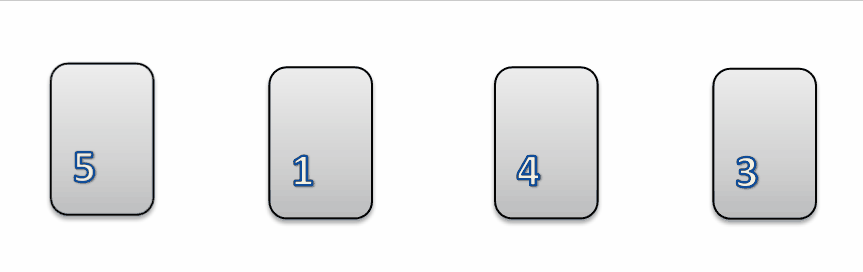 最开始的有序区间里只有5这个数,故是默认有序的,然后是将1、4、3依次插入到有序序列中