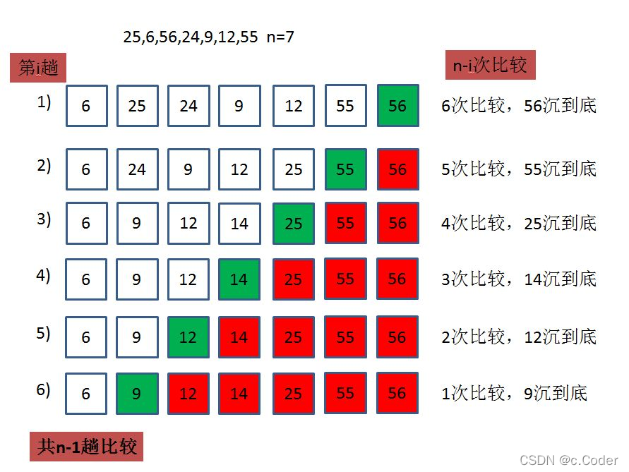 冒泡排序: