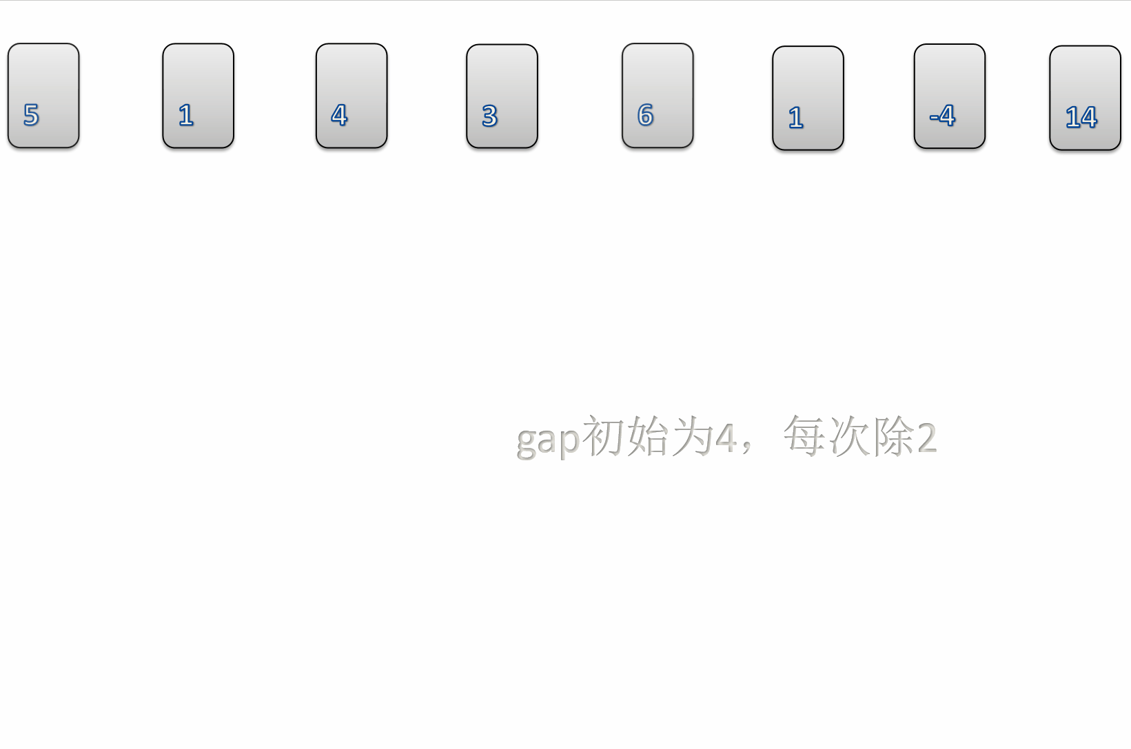 gap /= 2;//每次都先将gap除2,最后gap一定会到1