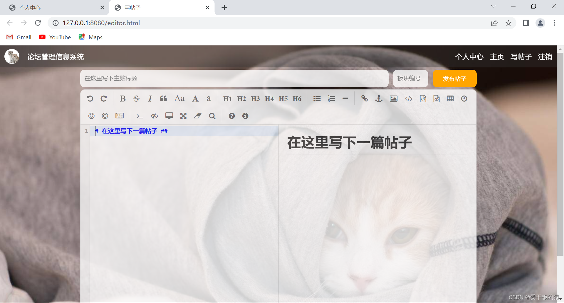 用户写帖子页: