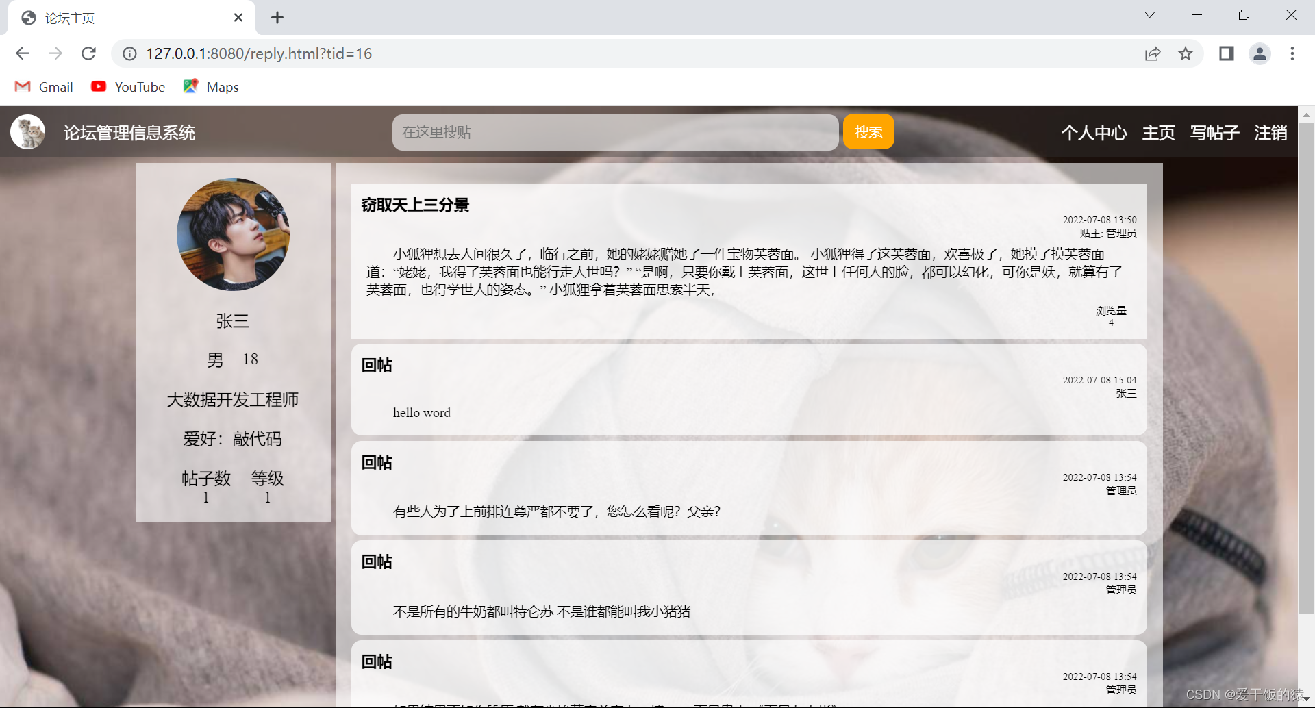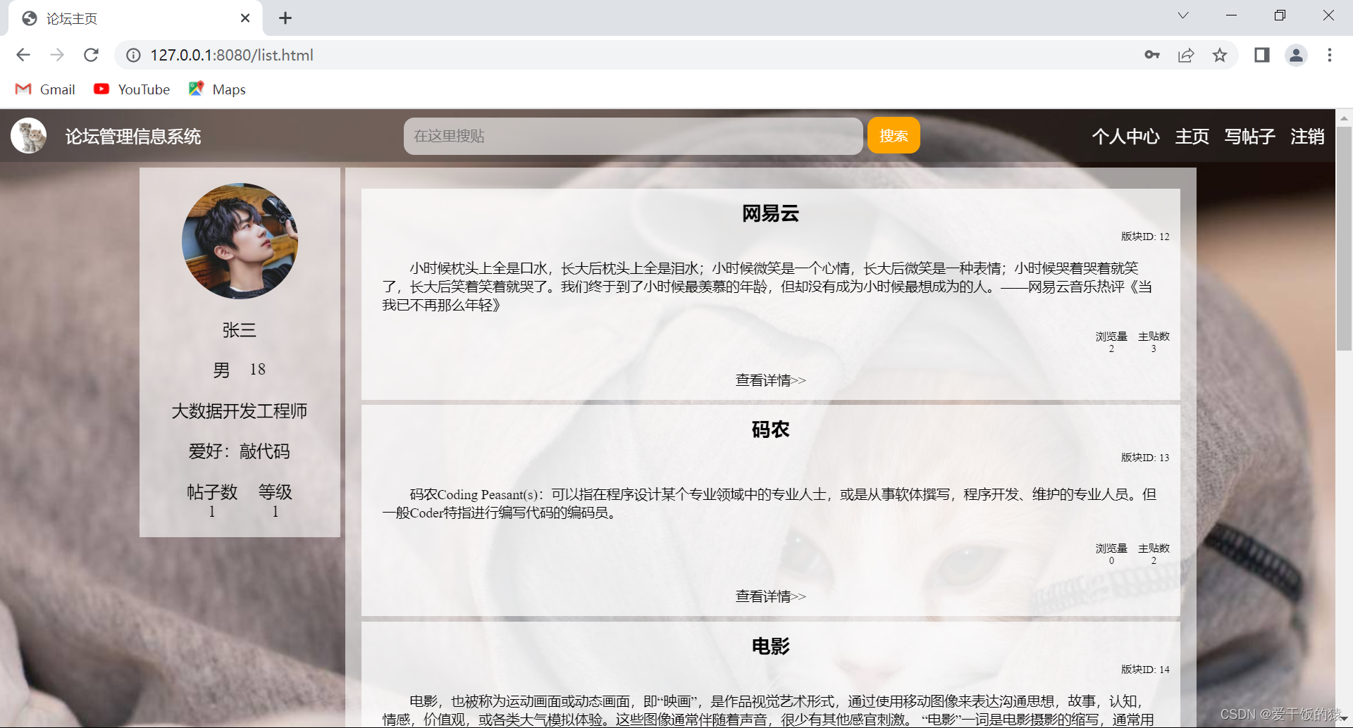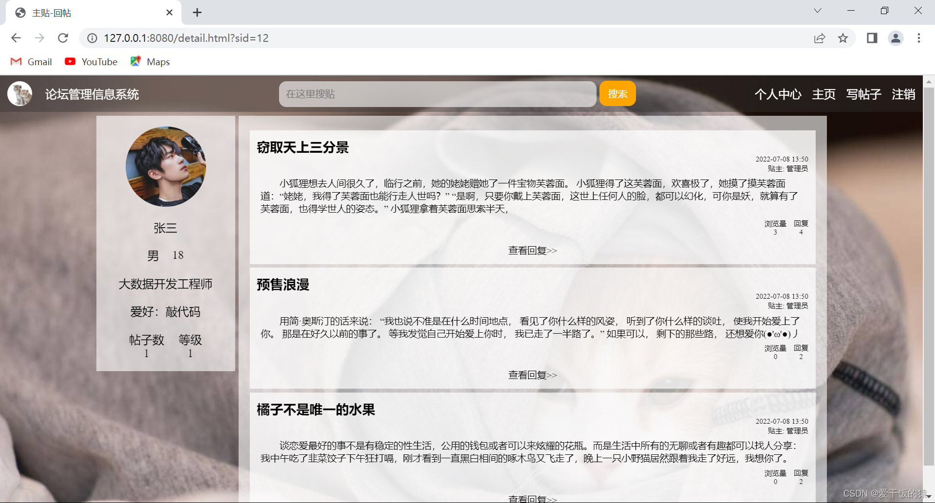 此篇文章仅展示重要代码思路过程,项目源码在 gitee 中链接: 《论坛信息管理系统》