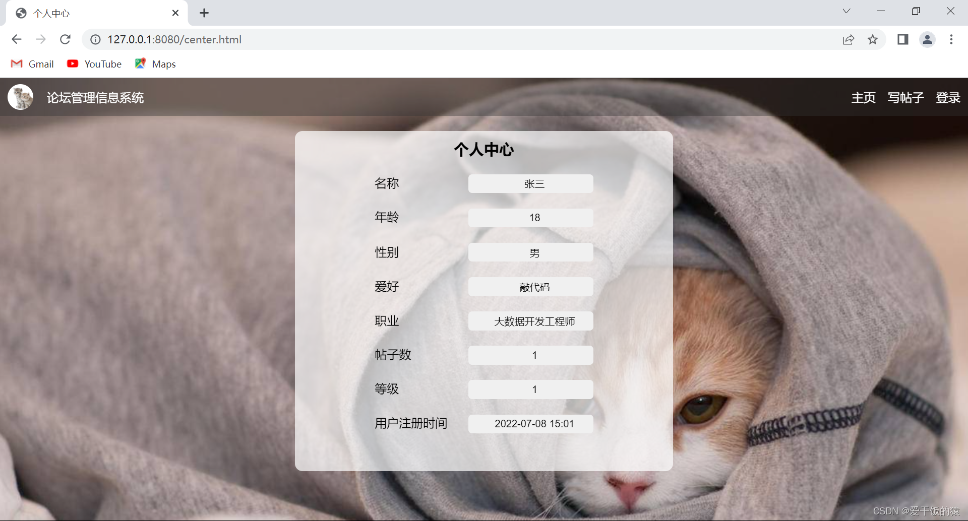 用户个人信息页: